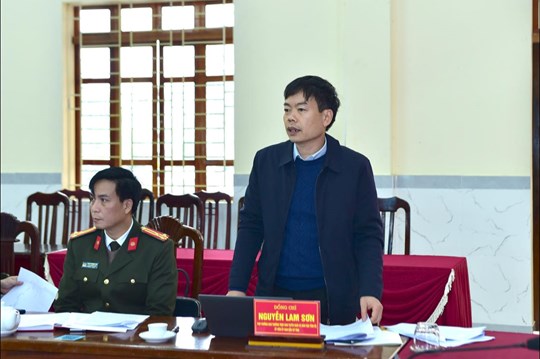 | Ông Nguyễn Lam Sơn, Ủy viên BCH Đảng bộ tỉnh, Phó Trưởng ban Thường trực Ban Tuyên giáo và Dân vận Tỉnh ủy, Ủy viên Ủy ban bầu cử tỉnh phát biểu tại buổi làm việc |