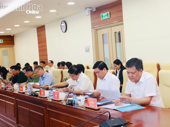 | Đồng chí Trần Phong, đồng chí Lâm Đông cùng các đồng chí Ủy viên Ban Thường vụ Tỉnh ủy, thành viên Ban Chỉ đạo Bầu cử tỉnh, Ủy viên Ủy ban Bầu cử tỉnh tham dự cuộc họp. |