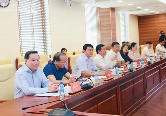 | Đồng chí Hồ Xuân Trường, đồng chí Nguyễn Khắc Hà cùng các đồng chí Ủy viên Ban Thường vụ Tỉnh ủy, thành viên Ban Chỉ đạo Bầu cử tỉnh, Ủy viên Ủy ban Bầu cử tỉnh tham dự cuộc họp. |