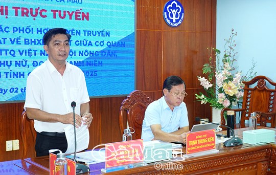 (Mặt trận) - Chiều 2/10, ông Trịnh Trung Kiên, Phó Giám đốc BHXH tỉnh và ông Bùi Minh Hải, Phó Chủ tịch Uỷ ban MTTQ Việt Nam tỉnh đồng chủ trì hội nghị trực tuyến đánh giá kết quả phối hợp tuyên truyền chính sách BHXH, BHYT trong thời gian qua và bàn giải pháp thực hiện hiệu quả hơn trong thời gian tới. Hội nghị có sự tham dự của đại diện Hội Nông dân, Hội LHPN, Đoàn Thanh niên cùng các đơn vị ở cơ sở.