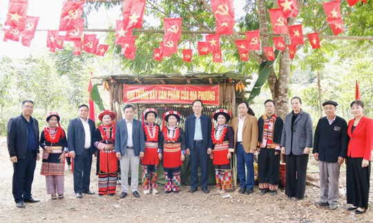 | Phó Chủ tịch UBND tỉnh Vũ Đình Quang và đoàn công tác chung vui Ngày hội đại Đoàn kết toàn dân tộc với bà con nhân dân xóm Chông Cá |