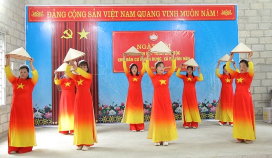 | Nhân dân xóm Khuổi Rung biểu diễn văn nghệ trong ngày hội |