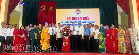 Lãnh đạo Ủy ban MTTQ Việt Nam tỉnh, lãnh đạo xã Vũ Quý tặng hoa chúc mừng Ủy ban MTTQ Việt Nam xã Vũ Quý, nhiệm kỳ 2025 - 2030 |