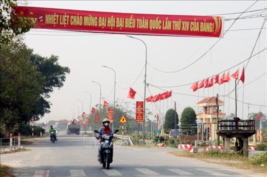 | Sắc đỏ rực rỡ chào mừng Đại hội Đại biểu toàn quốc lần thứ XIV của Đảng trên tuyến đường xã Nhân Hà |