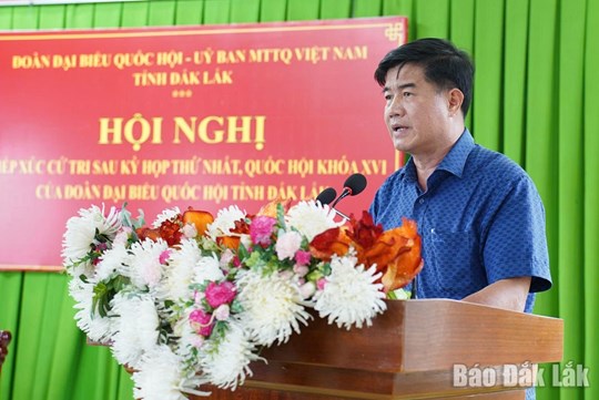 Tại Hội nghị, đại diện Đoàn đại biểu Quốc hội tỉnh Đắk Lắk đã thông báo đến cử tri kết quả của Kỳ họp thứ nhất, Quốc hội khóa XVI. Theo đó, sau 12 ngày làm việc (đợt 1 từ ngày 06 - 12/4; đợt 2 từ ngày 20 - 24/4) với tinh thần đổi mới, trách nhiệm và quyết tâm cao, Kỳ họp đã hoàn thành toàn bộ nội dung chương trình đề ra.