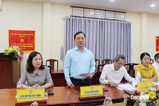 | Đồng chí Hà Anh Dũng, Ủy viên Ban Thường vụ Tỉnh ủy, Phó Chủ tịch Thường trực Ủy ban MTTQ Việt Nam tỉnh Đồng Nai phát biểu tại hội nghị. Ảnh: Hồ Thảo |