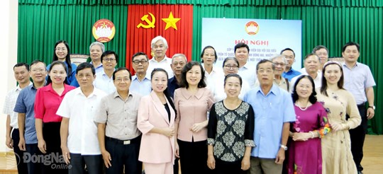 Phó Bí thư Tỉnh ủy, Chủ tịch Ủy ban MTTQ Việt Nam tỉnh Đồng Nai Huỳnh Thị Hằng cùng đại biểu tại hội nghị. Ảnh: Văn Truyên |