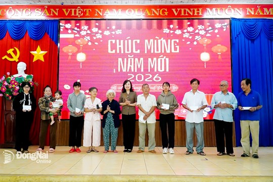 (Mặt trận) - Nhân dịp Tết Nguyên đán Bính Ngọ 2026, sáng 9-2, Phó Bí thư Tỉnh ủy, Chủ tịch Ủy ban MTTQ Việt Nam tỉnh Đồng Nai Huỳnh Thị Hằng đã đến thăm và trao tặng 50 phần quà Tết cho các gia đình chính sách, hộ nghèo, người dân có hoàn cảnh khó khăn trên địa bàn phường Bình Long.