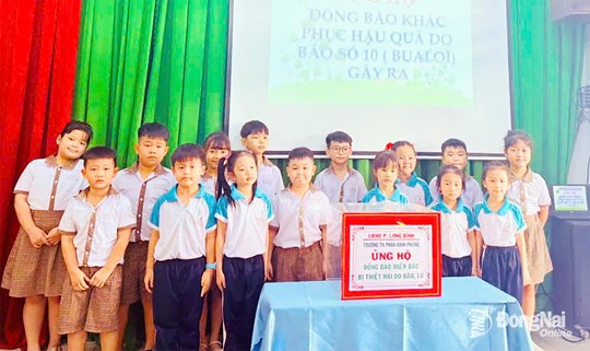 Ngày 21/10, cô Phạm Thị Dịu, Hiệu trưởng Trường Tiểu học Phan Đình Phùng (phường Long Bình, tỉnh Đồng Nai) cho biết: Hưởng ứng lời kêu gọi của Ủy ban MTTQ Việt Nam tỉnh Đồng Nai, với tinh thần "Tương thân tương ái", "Lá lành đùm lá rách", tập thể cán bộ, giáo viên, nhân viên, học sinh của nhà trường đã tích cực tham gia ủng hộ đồng bào các tỉnh miền Bắc, miền Trung khắc phục hậu quả do bão số 10 (Bualoi) gây ra.