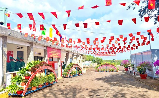 | Khu vực bỏ phiếu số 17 (phường Thống Nhất) được trang trí rực rỡ, sẵn sàng cho ngày bầu cử. Ảnh: P.D |