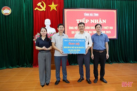 Cũng trong chiều 10/10, Ban Vận động cứu trợ tỉnh Hà Tĩnh đã tiếp nhận 100 triệu đồng từ Công ty Cổ phần Thủy điện Hương Sơn ủng hộ Nhân dân Hà Tĩnh bị thiệt hại do cơn bão số 10.