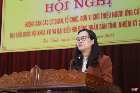Tại hội nghị, Phó Chủ tịch Ủy ban MTTQ tỉnh Phạm Thị Thu Hà đã hướng dẫn các cơ quan, tổ chức, đơn vị có người ứng cử về quy trình giới thiệu và làm hồ sơ ứng cử. Việc giới thiệu người ứng cử ĐBQH, đại biểu HĐND các cấp của các cơ quan, tổ chức, đơn vị phải hoàn thành chậm nhất ngày 25/1/2026.
