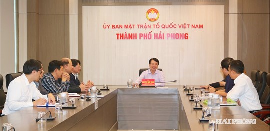 | Ủy ban MTTQ Việt Nam thành phố tiếp nhận bảng tượng trưng số tiền 560 triệu đồng từ Hiệp hội Du lịch thành phố Hải Phòng |
