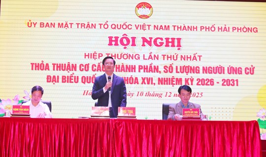 (Mặt trận) - Chiều 10/12, Ban Thường trực Ủy ban MTTQ Việt Nam thành phố tổ chức Hội nghị hiệp thương lần thứ nhất nhằm thỏa thuận về cơ cấu, thành phần và số lượng người được giới thiệu ứng cử đại biểu Quốc hội khóa XVI và đại biểu HĐND thành phố khóa XVII, nhiệm kỳ 2026 - 2031.