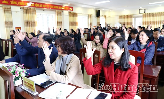 Sau khi nghe danh sách người dự kiến được giới thiệu ứng cử, tiểu sử của người ứng cử và các quy định, tiêu chuẩn đại biểu HĐND… các cử tri thảo luận, bày tỏ thống nhất cao với danh sách người được giới thiệu ứng cử. Trên tinh thần dân chủ, khách quan, 100% cử tri có mặt tại hội nghị biểu quyết nhất trí giới thiệu 4 người tham gia ứng cử đại biểu HĐND tỉnh khóa XVIII.