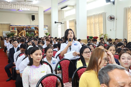| Sinh viên Trường Cao đẳng Du lịch Nha Trang nêu ý kiến tại Hội nghị. |