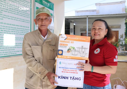 | Trao quà hỗ trợ người dân xã Diên Khánh, tỉnh Khánh Hòa. |