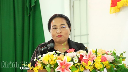 Bà Chamaléa Thị Thủy - Ủy viên Ban Thường vụ Tỉnh ủy, Giám đốc Sở Dân tộc và Tôn giáo trình bày chương trình hành động.