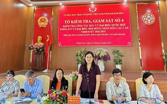 (Mặt trận) - Chiều 04/02, đồng chí Phan Thị Ngân Hạnh, Phó Chủ tịch Ủy ban Mặt trận Tổ quốc Việt Nam tỉnh, Chủ tịch Hội Nông dân tỉnh, Trưởng đoàn kiểm tra số 4 của Ủy ban Bầu cử tỉnh Khánh Hòa cùng các thành viên trong đoàn đi kiểm tra công tác bầu cử đại biểu Quốc hội khóa XVI và đại biểu Hội đồng nhân dân các cấp nhiệm kỳ 2026 - 2031 tại 03 xã: Khánh Sơn, Đông Khánh Sơn và Tây Khánh Sơn.