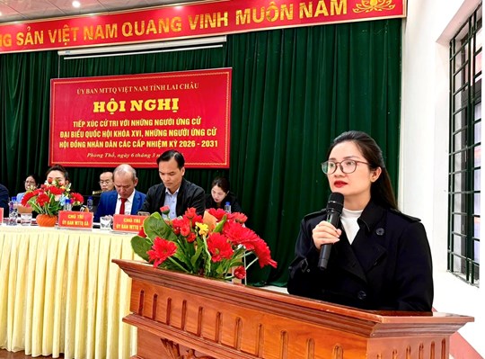 Tại hội nghị, đại diện Ban Thường trực Ủy ban MTTQ Việt Nam xã Phong Thổ, tỉnh Lai Châu  đã công bố tiểu sử tóm tắt của các ứng cử viên đại biểu Quốc hội khóa XVI và đại biểu HĐND các cấp nhiệm kỳ 2026 - 2031. Theo đó, có 5 người ứng cử đại biểu Quốc hội khóa XVI, 8 người ứng cử đại biểu HĐND tỉnh Lai Châu và 5 người ứng cử đại biểu HĐND xã Phong Thổ nhiệm kỳ 2026 - 2031.