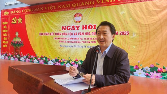 (Mặt trận) - Sáng 8/11, liên khu dân cư bản Thèn Pả, Tả Lèng Lao Chải, Hồ Pên, Pho Lao Chải, Pho Xin Chải (xã Tả Lèng) tổ chức Ngày hội đại đoàn kết toàn dân tộc và văn hóa quân dân năm 2025. Ông Sùng A Hồ - Phó Bí thư Thường trực Tỉnh ủy, Chủ tịch Ủy ban MTTQ Việt Nam tỉnh dự ngày hội.