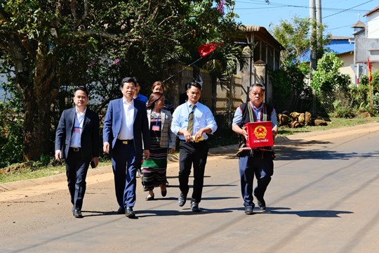 | Đồng chí Lưu Văn Trung, Phó Bí thư Tỉnh ủy, Chủ tịch HĐND tỉnh, Chủ tịch Ủy ban Bầu cử tỉnh Lâm Đồng cùng cán bộ xã Đức An mang thùng phiếu di động đến nhà cử tri |