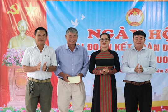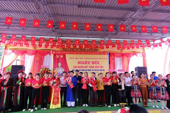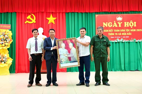 | Cấp ủy Đảng và chính quyền xã Hoà Bắc tặng hoa chúc mừng Ngày hội Đại đoàn kết toàn dân tộc thôn 7B |