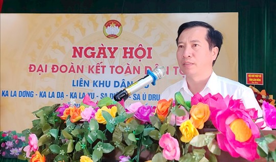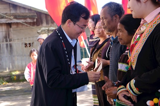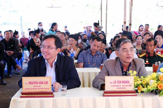 | Ông Nguyễn Văn Lộc, Tỉnh ủy viên, Giám đốc Sở Văn hóa, Thể thao và Du lịch tỉnh và Lãnh đạo xã Đam Rông 1 dự ngày hội Đại đoàn kết tại thôn Păng Báh |