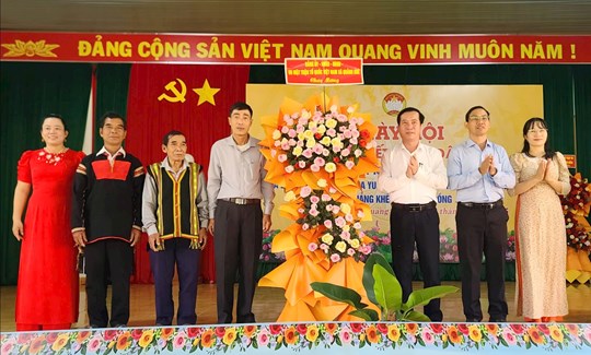 | Đảng ủy, HĐND, UBND, Ủy ban MTTQ Việt Nam xã Quảng Khê tặng hoa chúc mừng Ngày hội |