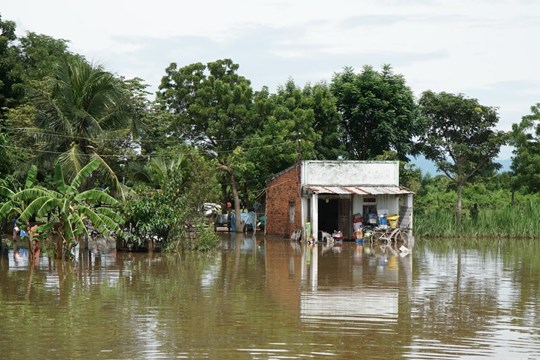 | Đến ngày 2/11, nhà của nhiều hộ dân ở thôn Lương Bắc, xã Lương Sơn vẫn còn bị ngập nước |