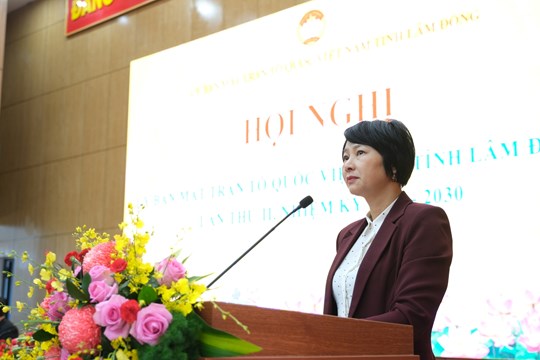| Phó Bí thư Tỉnh ủy, Chủ tịch Ủy ban MTTQ Việt Nam tỉnh Lâm Đồng Phạm Thị Phúc phát biểu chỉ đạo tại hội nghị |