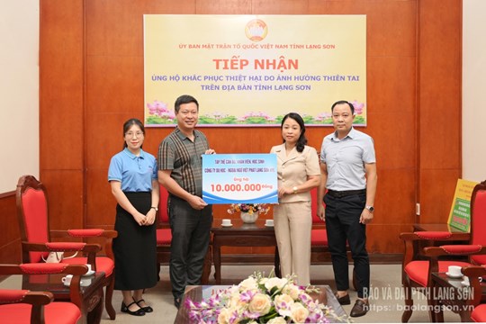 Ủy ban MTTQ Việt Nam tỉnh Lạng Sơn đã tiếp nhận tiền ủng hộ trên 2 tỷ đồng từ 4 đơn vị, doanh nghiệp. Trong đó, tiếp nhận 2 tỷ đồng của Tập đoàn Công nghiệp Than - Khoáng sản Việt Nam, 100 triệu đồng của Ngân hàng Chính sách xã hội Chi nhánh tỉnh Lạng Sơn, hơn 20 triệu đồng của Công ty TNHH MTV Petrolimex Lạng Sơn và 10 triệu đồng của Công ty Cổ phần Phát triển giáo dục quốc tế Việt Phát Lạng Sơn.