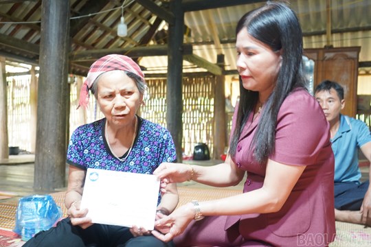 Đồng chí Nguyễn Thị Bích Nhiệm - Tỉnh ủy viên, Phó Chủ tịch Uỷ ban MTTQ Việt Nam thăm hỏi, động viên, tỉnh trao kinh phí hỗ trợ mai táng cho gia đình có người tử vong do sạt lở đất |