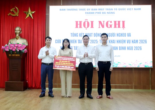 (Mặt trận) - Sáng ngày 27/01, Ban Thường trực Ủy ban Mặt trận Tổ quốc Việt Nam thành phố Đà Nẵng tổ chức Hội nghị tổng kết hoạt động Quỹ Vì người nghèo, cứu trợ thiên tai năm 2025; triển khai nhiệm vụ năm 2026 và công tác chăm lo Tết Nguyên đán Bính Ngọ 2026.