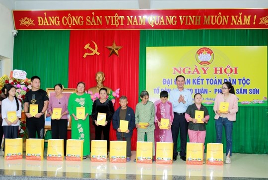 Tại ngày hội, Phó Bí thư Tỉnh ủy, Chủ tịch Ủy ban MTTQ tỉnh Trịnh Tuấn Sinh đã trao tặng cán bộ, Nhân dân tổ dân phố Thọ Xuân bức ảnh “Bác Hồ với bác Tôn” - biểu tượng cao đẹp của tinh thần đại đoàn kết toàn dân tộc; trao 80 triệu đồng hỗ trợ xây dựng nhà Đại đoàn kết cho gia đình chị Vũ Thị Xòe; trao 10 suất quà cho các gia đình chính sách, hộ có hoàn cảnh đặc biệt khó khăn trên địa bàn.