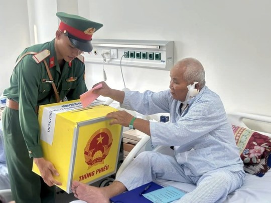 Tổ bầu cử bố trí thùng phiếu lưu động để hỗ trợ cử tri là bệnh nhân thực hiện bỏ phiếu ngay tại giường bệnh