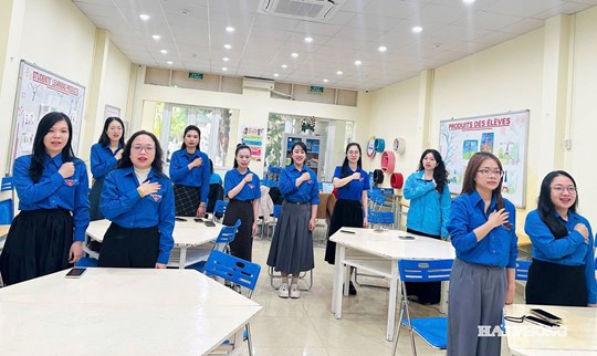| Chi đoàn giáo viên Trường Tiểu học Hồng Bàng (phường Hồng Bàng) thực hiện nghi lễ chào cờ, bày tỏ niềm tin yêu tuyệt đối vào sự lãnh đạo của Đảng Cộng sản Việt Nam. |