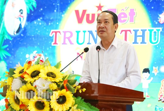 Đồng chí khẳng định: Trong những năm qua, cấp ủy, chính quyền, Mặt trận Tổ quốc các cấp, nhà trường, gia đình và xã hội luôn quan tâm, chăm lo, tạo mọi điều kiện tốt nhất để các cháu được vui chơi, học tập, rèn luyện, phát triển toàn diện trong môi trường an toàn, lành mạnh và được thực hiện đầy đủ các quyền của trẻ em. Đồng chí chúc các cháu thiếu niên, nhi đồng đón Tết Trung thu vui tươi, an toàn và thực sự là Tết đoàn viên.