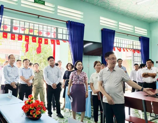 Đoàn đã đến kiểm tra việc vận hành thử nghiệm quy trình bầu cử tại điểm bỏ phiếu khu phố Phú Thuận, phường Phú An. Chương trình được thực hiện đầy đủ các bước như trong ngày bầu cử chính thức, nhằm giúp các tổ bầu cử nắm vững quy trình.
