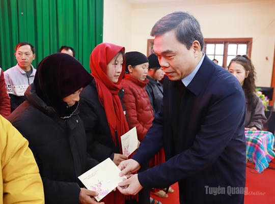 Phó Bí thư Tỉnh ủy, Chủ tịch Ủy ban MTTQ tỉnh Tuyên Quang Ma Thế Hồng thăm, tặng quà Tết tại xã Sà Phìn