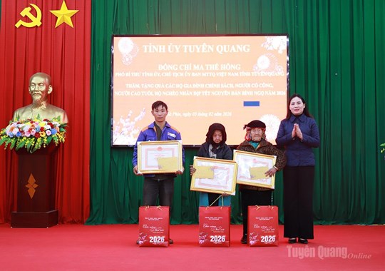 (Mặt trận) - Sáng 5-2, đồng chí Ma Thế Hồng, Phó Bí thư Tỉnh ủy, Chủ tịch Ủy ban MTTQ Việt Nam tỉnh đã tới tặng quà, chúc Tết tại xã Sà Phìn nhân dịp Tết Nguyên đán Bính Ngọ 2026. Cùng đi có đồng chí Âu Thị Mai, Ủy viên BCH Đảng bộ tỉnh, Phó Chủ tịch Ủy ban MTTQ tỉnh, Chủ tịch Hội Liên hiệp Phụ nữ tỉnh; lãnh đạo Sở Nội vụ.