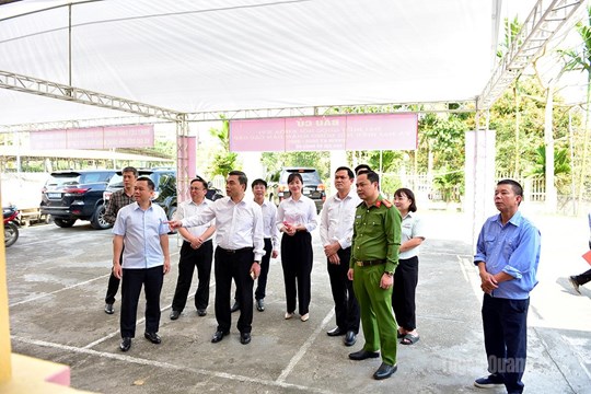 | Đồng chí Ma Thế Hồng, Phó Bí thư Tỉnh uỷ, Chủ tịch Uỷ ban MTTQ Việt Nam tỉnh kiểm tra công tác chuẩn bị bầu cử tại Nhà văn hoá tổ dân phố Trung Môn 4, phường Minh Xuân. |