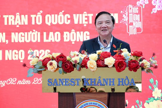 (Mặt trận) - Nhân dịp Tết Bính Ngọ 2026, sáng 6/2, theo sự phân công của Ban Bí thư Trung ương Đảng, Ủy viên Trung ương Đảng, Phó Chủ tịch Quốc hội Nguyễn Khắc Định đã thăm, chúc Tết và tặng quà công nhân, người lao động, các gia đình chính sách, hộ nghèo, cận nghèo, gia đình có hoàn cảnh khó khăn tại Cụm Công nghiệp Diên Phú, xã Diên Điền, tỉnh Khánh Hòa.