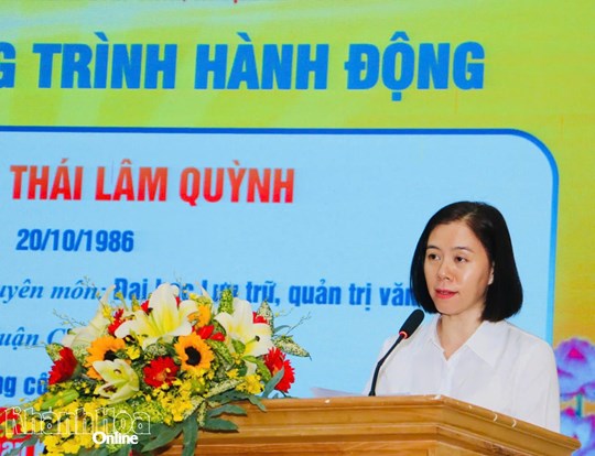 | Bà Thái Lâm Quỳnh trình bày chương trình hành động. |