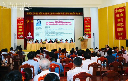 Tại Hội nghị, đại diện Ban Thường trực Ủy ban Mặt trận Tổ quốc Việt Nam tỉnh Khánh Hòa thông qua tiểu sử tóm tắt của những người ứng cử đại biểu Quốc hội khóa XVI, Đơn vị bầu cử số 2 gồm các ông, bà: Nguyễn Khắc Định - Ủy viên Trung ương Đảng, Ủy viên Ban Thường vụ Đảng ủy Quốc hội, Phó Chủ tịch Quốc hội, Ủy viên Hội đồng Bầu cử quốc gia; Lê Hữu Trí - Tỉnh ủy viên, Phó Trưởng đoàn phụ trách Đoàn Đại biểu Quốc hội tỉnh Khánh Hòa, Ủy viên Ủy ban Kinh tế và Tài chính của Quốc hội; Nguyễn Thanh Ngân - Phó Bí thư Chi bộ IX, Phó Trưởng phòng Kế hoạch - Tổng hợp Bệnh viện Đa khoa Khánh Hòa; Trần Thị Nhàn - Chuyên viên Văn phòng Sở Văn hoá, Thể thao và Du lịch tỉnh Khánh Hòa; Phạm Thị Thảo Văn - Chuyên viên Văn phòng Ban Quản lý Khu kinh tế và Khu công nghiệp tỉnh Khánh Hòa.