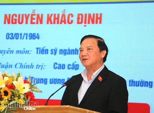 | Phó Chủ tịch Quốc hội Nguyễn Khắc Định trình bày chương trình hành động. |