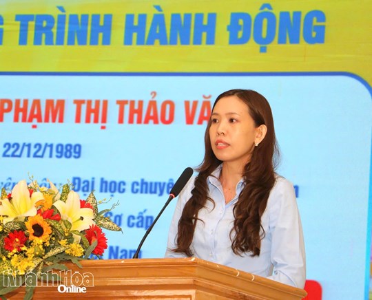 | Bà Phạm Thị Thảo Văn trình bày chương trình hành động. |