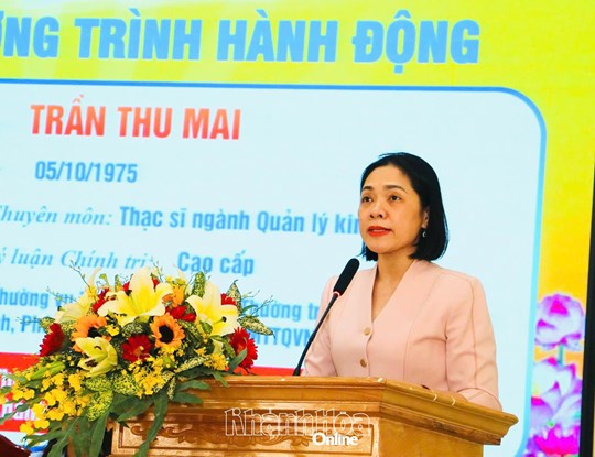 | Bà Trần Thị Nhàn trình bày chương trình hành động. |