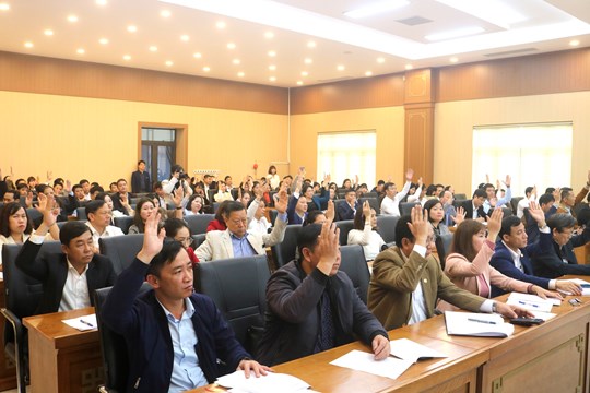 Các đại biểu biểu quyết thống nhất dự kiến về số lượng, cơ cấu, thành phần được giới thiệu ứng cử ĐBQH khóa XVI, đại biểu HĐND tỉnh, nhiệm kỳ 2026 - 2031