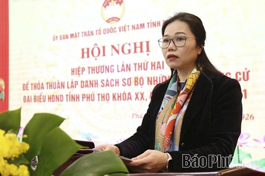 Phát biểu kết luận hội nghị, đồng chí Phó Bí thư Tỉnh ủy, Chủ tịch Ủy ban MTTQ tỉnh Phú Thọ Bùi Thị Minh khẳng định: Hội nghị đã thống nhất lập danh sách sơ bộ những người đủ tiêu chuẩn được giới thiệu ứng cử đại biểu HĐND tỉnh nhiệm kỳ 2026-2031. Danh sách sơ bộ bảo đảm đúng cơ cấu, thành phần, số lượng đã được thống nhất tại Hội nghị hiệp thương lần thứ nhất; bảo đảm tính đại diện của các tầng lớp Nhân dân, giới tính, độ tuổi, dân tộc, lĩnh vực công tác, phù hợp với yêu cầu của công tác bầu cử.